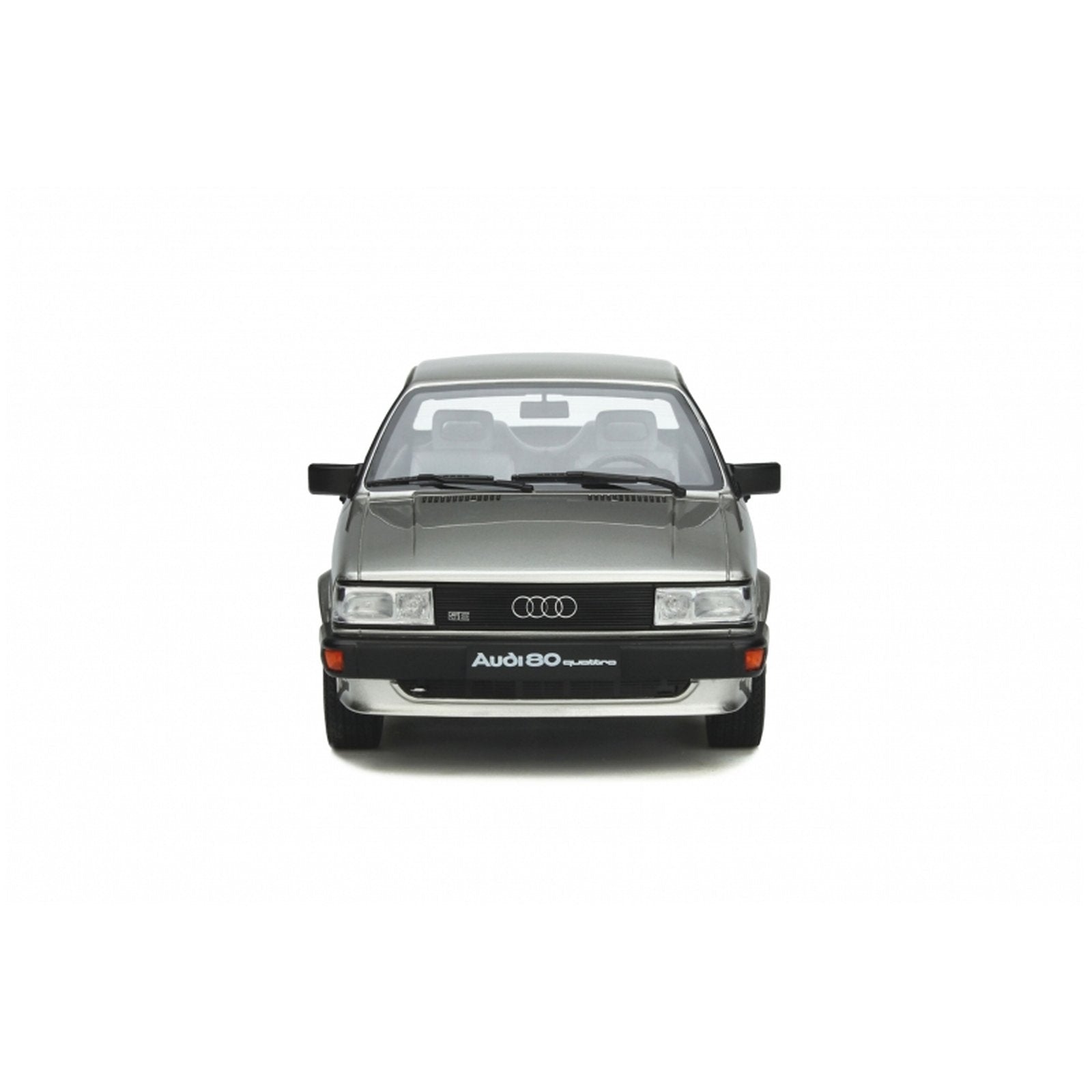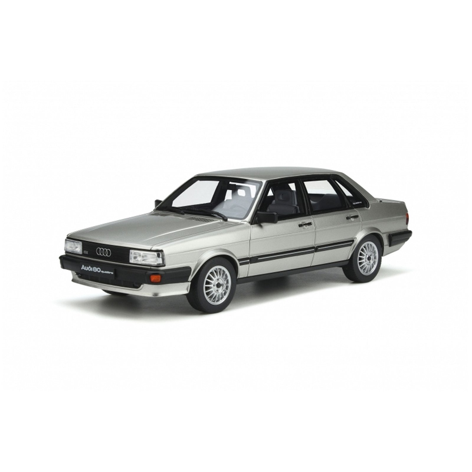 This Audi 80 Quattro (B2 Resin Series) resin model car is zermatt silver and features working wheels. It is made by OttOmobile and is 1:18 scale (approx. 25cm / 9.8in long).