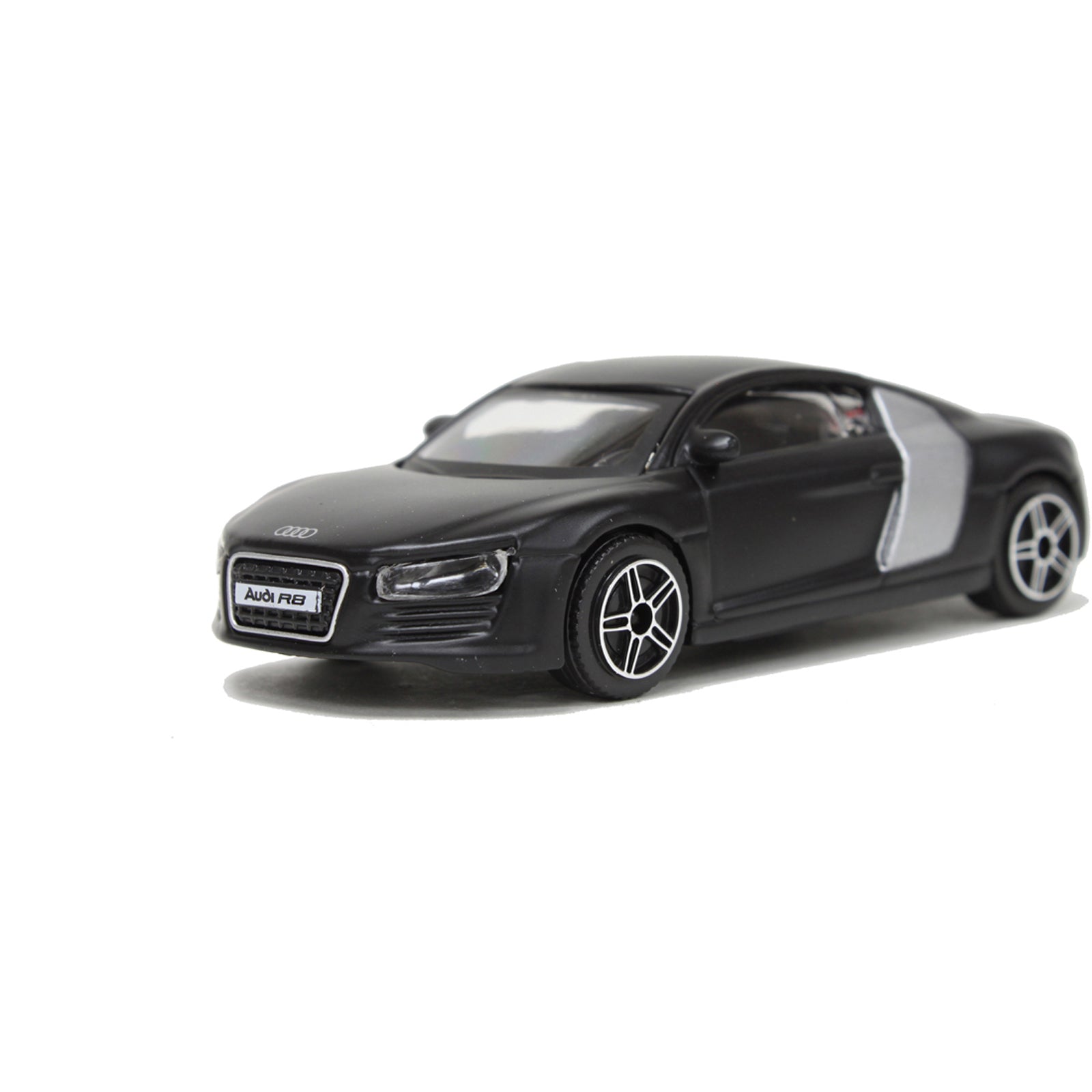This Audi R8 (2009) diecast model car is black and features working wheels. It is made by Bburago and is 1:43 scale (approx. 10cm / 3.9in long).