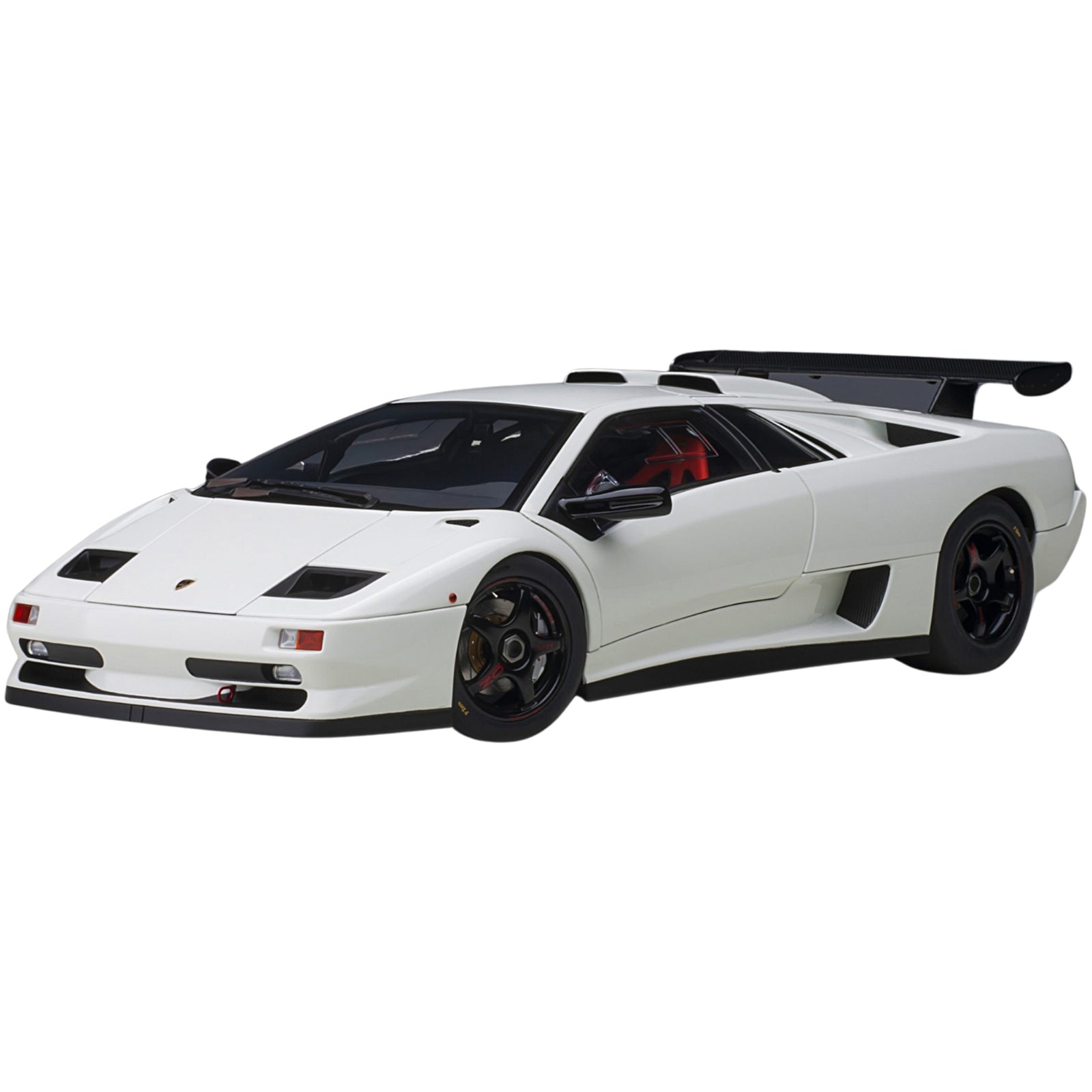 This Lamborghini Diablo SV R (1996) diecast model other racing car is impact white and features working steering, wheels and opening bonnet, boot, doors. It is made by AUTOart and is 1:18 scale (approx. 25cm / 9.8in long).