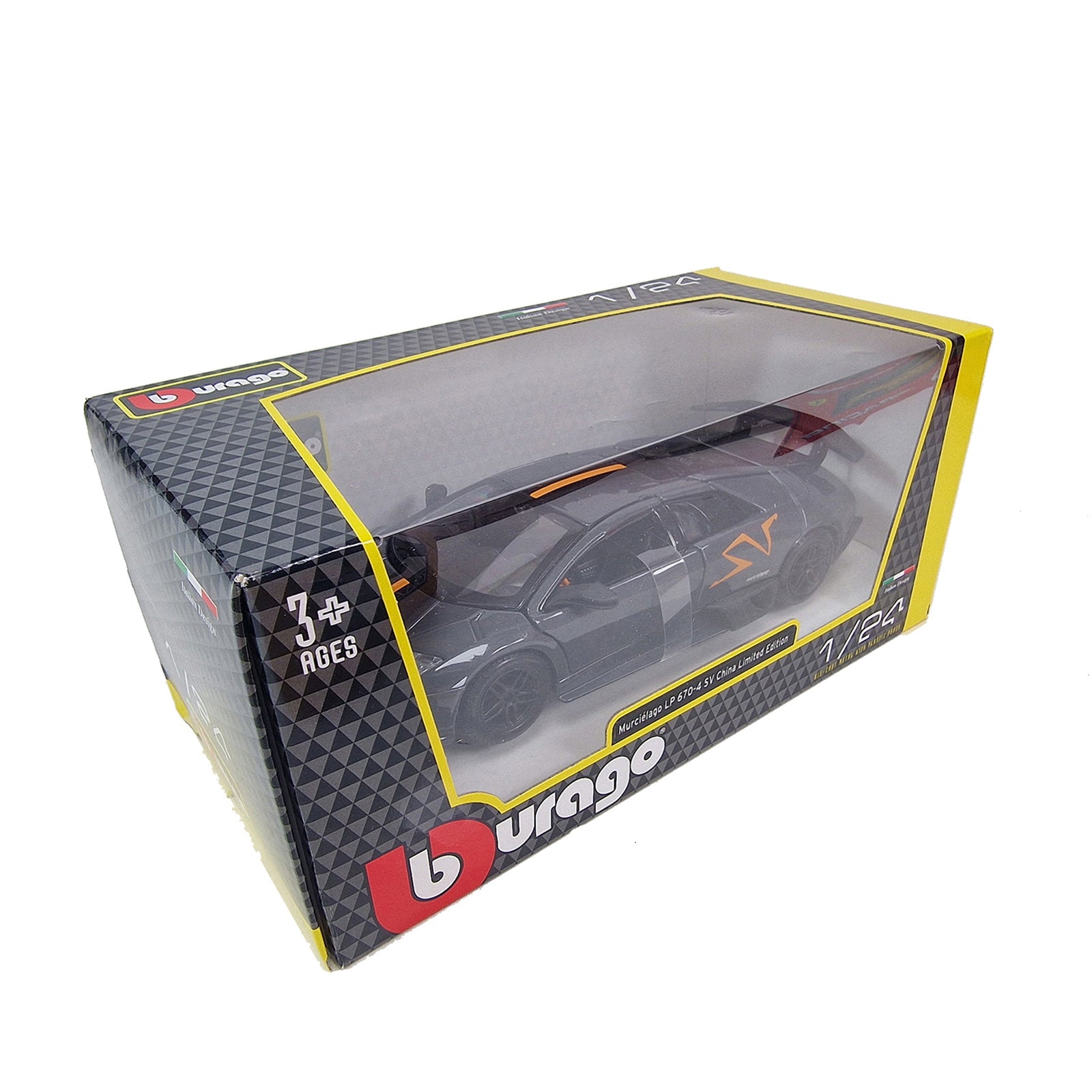 This Lamborghini Murcielago LP670-4 SV China Edition diecast model car is grey and features working wheels and opening boot with engine, doors. It is made by Bburago and is 1:24 scale (approx. 17cm / 6.7in long).