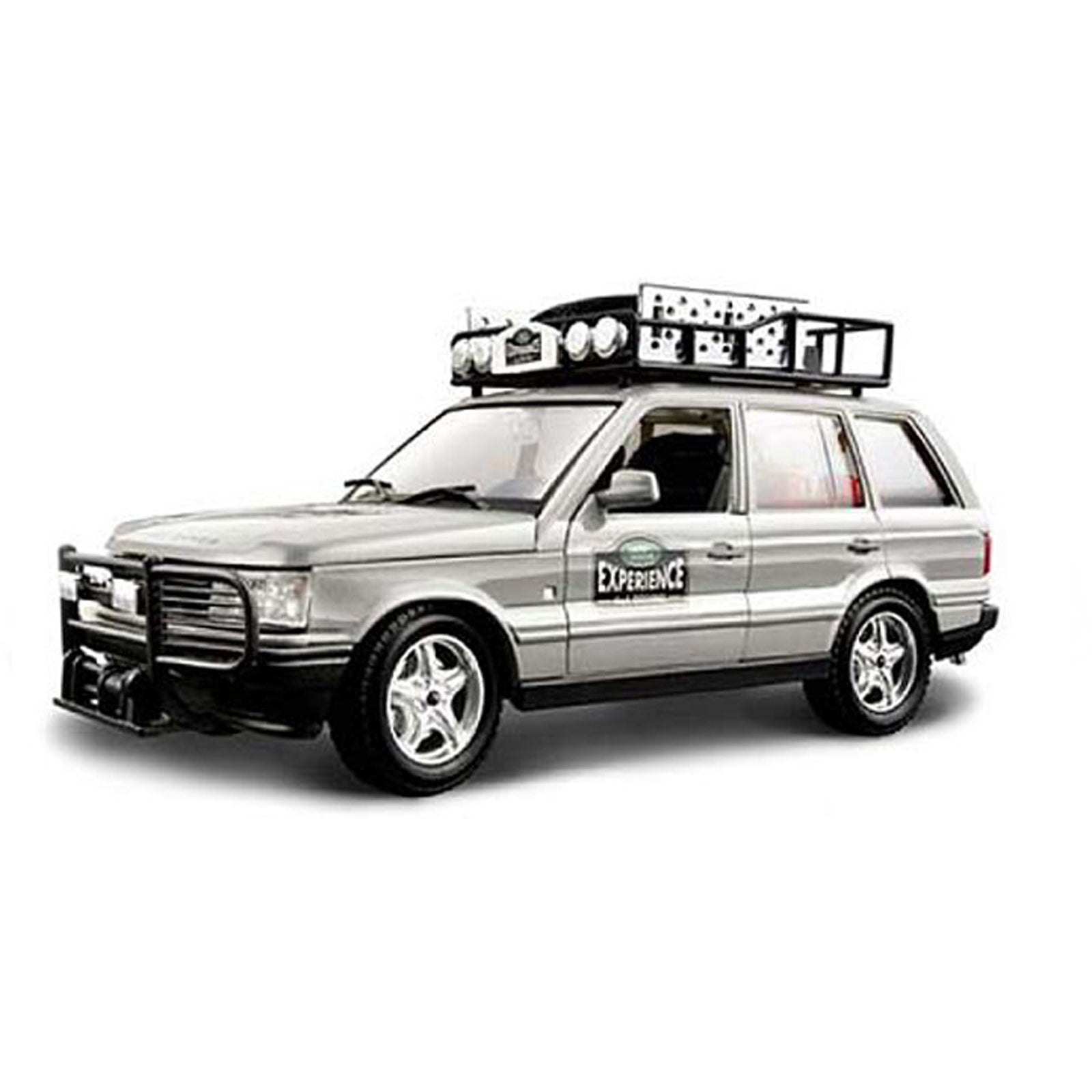 This Range Rover SE Experience diecast model car is silver and features working wheels and opening bonnet, doors, tailgate. It is made by Bburago and is 1:24 scale (approx. 17cm / 6.7in long).