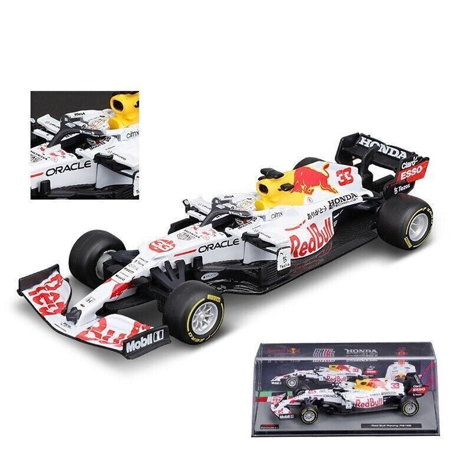 This Red Bull Racing Honda RB16B (Special Turkish GP Livery 2021 driven by Max Verstappen) diecast model grand prix car is white and features working wheels. It is made by Bburago and is 1:43 scale (approx. 12cm / 4.7in long). This model also comes in its own display case to keep it in perfect dust free condition.