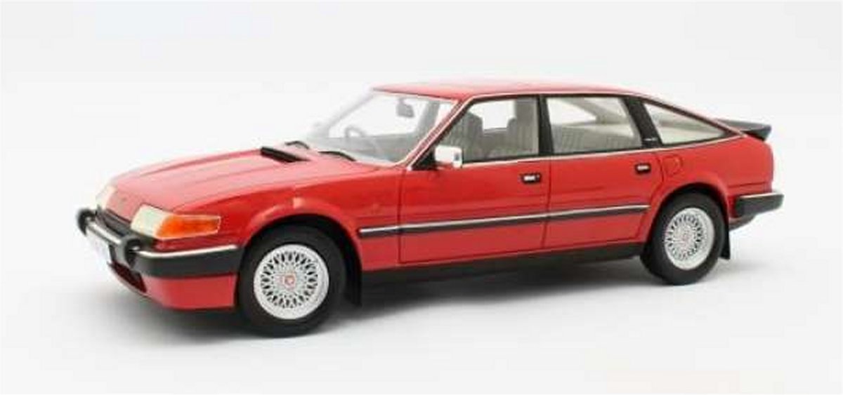 This Rover 3500 Vitesse (1985) diecast model car is red. It is made by Cult Scale Models and is 1:18 scale (approx. 26cm / 10.2in long).