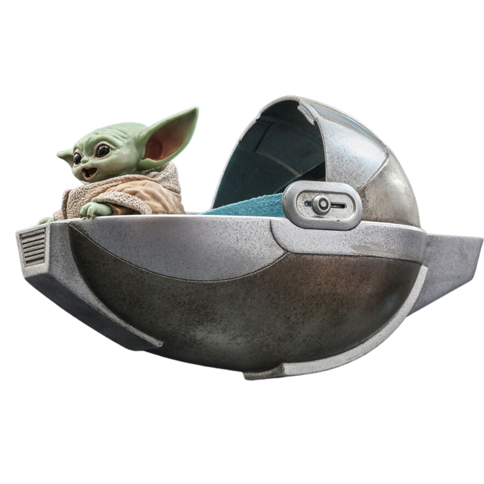 This Grogu Figure Set TV Collectable Figure is from Star Wars The Mandalorian and comes in themed packaging. It is made by Hot Toys and articulated body and extra display accessories. Made from plastic and metal it is 1:6 scale