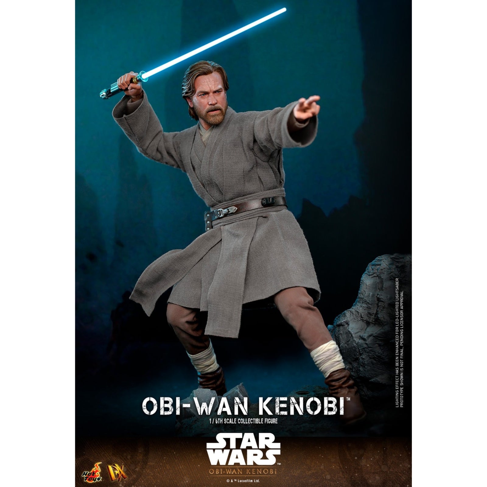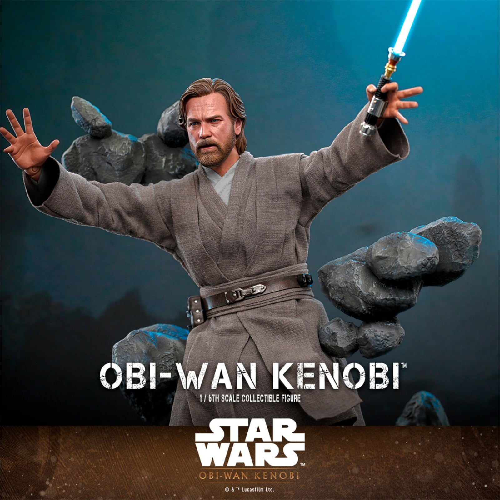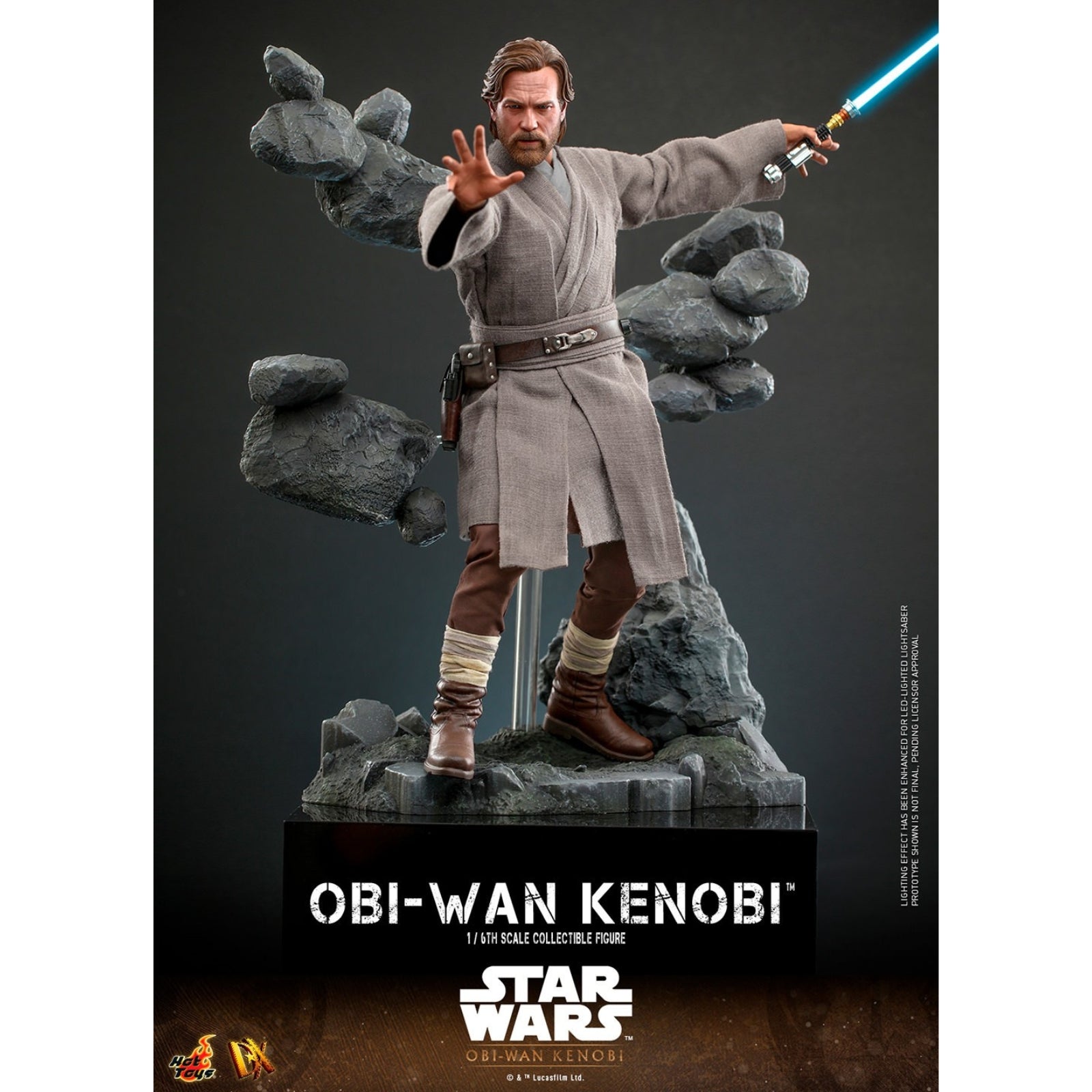This Obi-Wan Kenobi TV Collectable Figure is from Star Wars Obi-Wan Kenobi and comes attached to diarama display base and in themed packaging. It is made by Hot Toys and features working light. articulated body and extra display accessories as well as interchangeable parts. Made from plastic it is 1:6 scale measuring approx. 30cm / 11.8in tall. features working light.