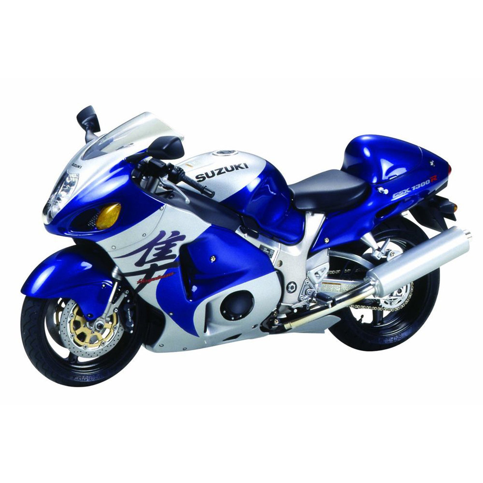 This Suzuki GSX1300R Hayabusa plastic model motorcycle kit. It is made by Tamiya and is 1:12 scale (approx. 17cm / 6.7in long).